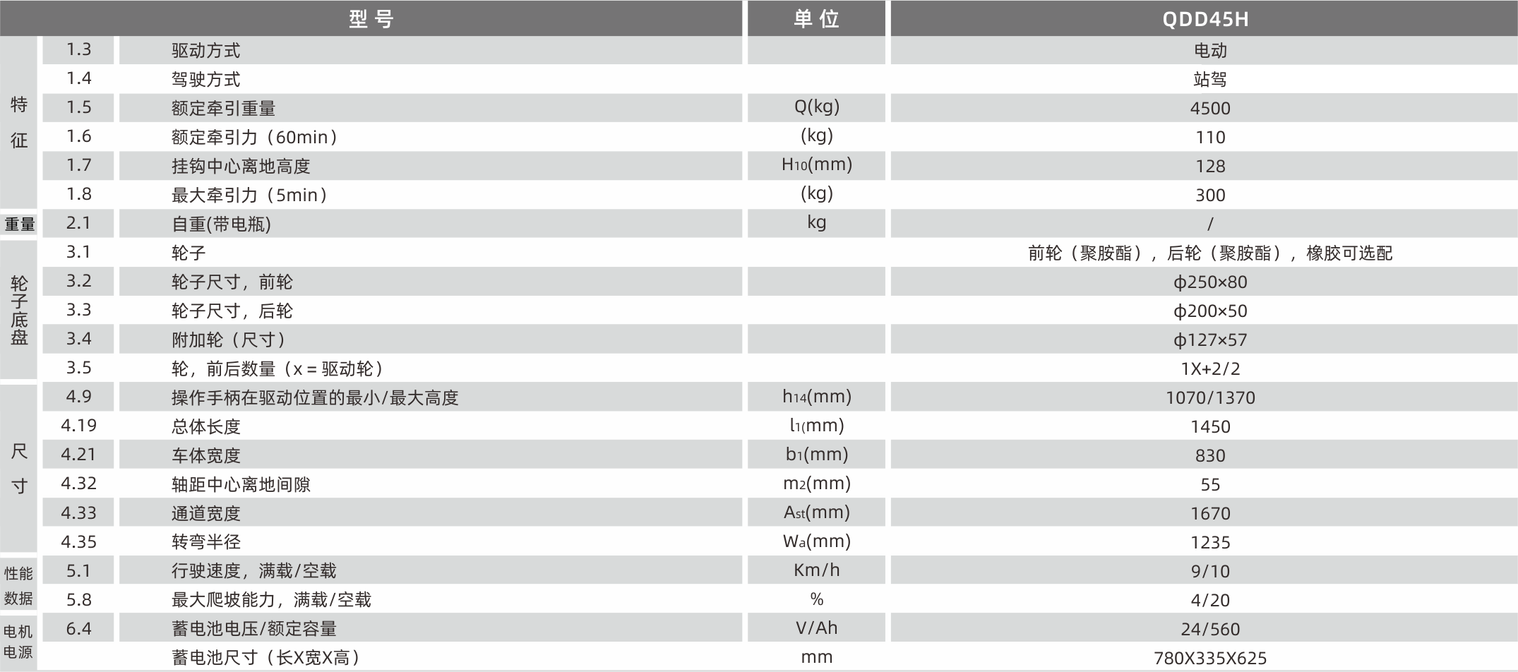 動力強勁,牽引4500KG時,最大可爬4%的坡度;